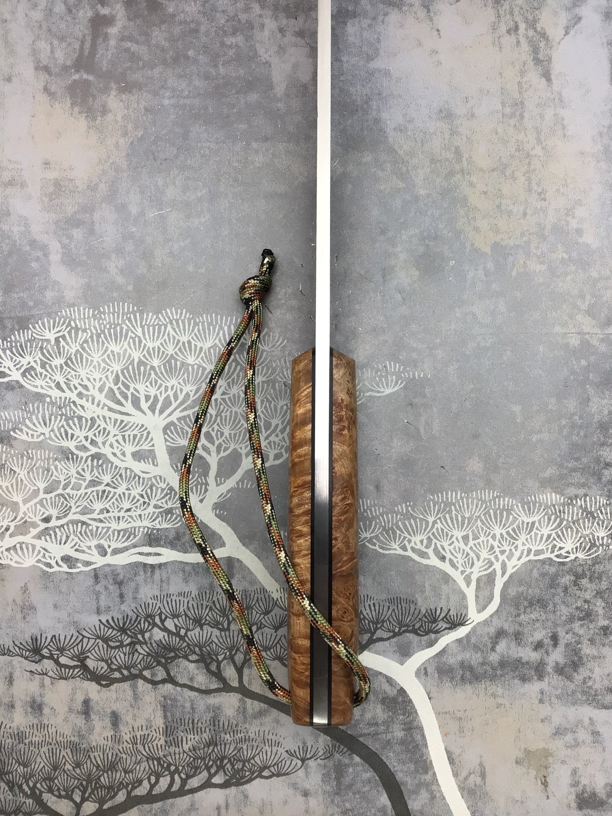 Handle: 4 ¾” English Burl Walnut scales